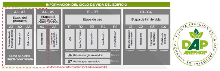A EPD is also a type III eco-label, which can be provided for buildings that qualify for a sustainable certification such as LEED, BREEAM or GREEN. Being in possession of this certification represents an advantage when it comes to obtaining a higher score for the calculation of the ICES (Index of Contribution of the Structure to Sustainability).