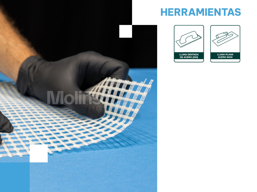 Treillis en fibre de verre résistant aux alcalis et à grande résistance aux impacts, indiquée pour le renfort et armature du mortier de protection des plaques d’isolation du système d’isolation thermique par l’extérieur PROPAM AISTERM. Usage principal pour plinthes ou zones exigeant une grande résistance à l’impact.