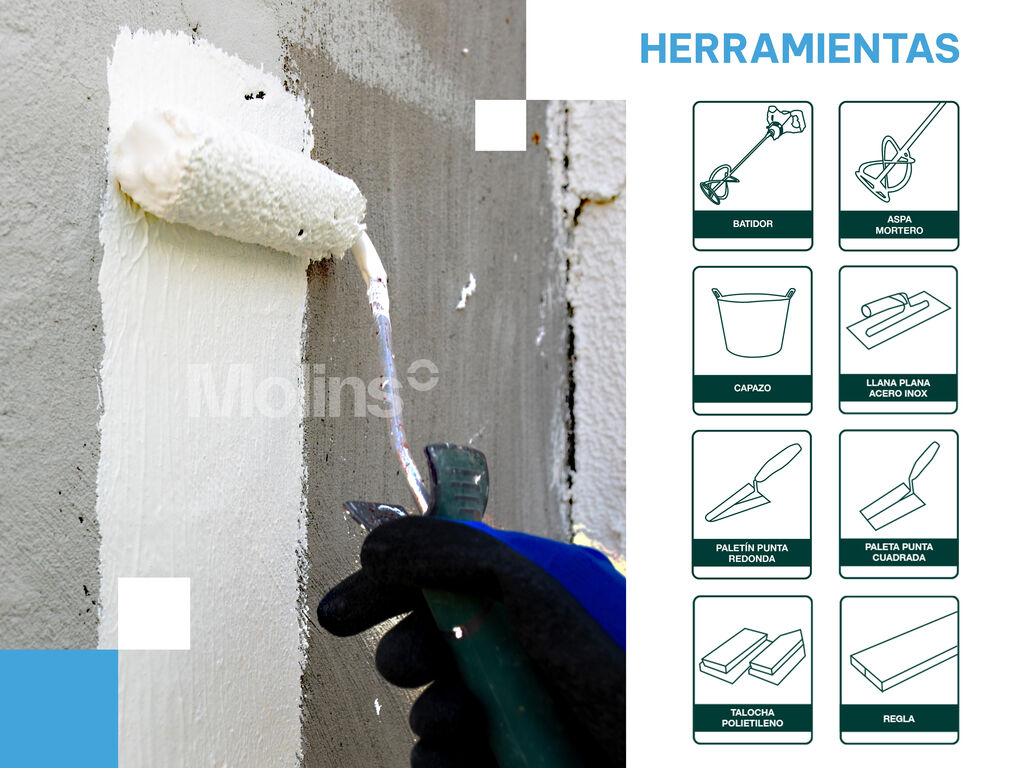 La consommation recommandée est de 100-150 g/m2 pour la première couche et de 150-200 gr/m2 pour la deuxième, en fonction de la porosité du support. |