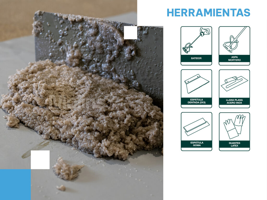 Mortier époxy à trois composants, teinté, à séchage rapide et à haute résistance pour la réparation non structurelle des chaussées. Conforme aux exigences de la norme UNE EN 13813.