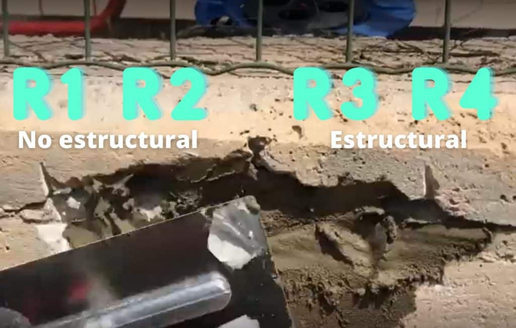 La norme UNE-EN 1504-3 définit et classifie les mortiers de réparation en fonction de leurs performances techniques et de leurs utilisations. Elle définit quatre classes de mortiers de réparation : classe R1 ou résistance inférieure, classe R2, classe R3 et classe R4. Chaque type a des valeurs différentes pour la résistance à la compression, l’adhérence et le module d’élasticité, entre autres.
