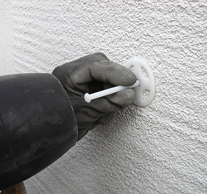 Une fois la deuxième couche sèche, on installe le PROPAM® TACO DE FIJACIÓN (le type dépend du support) à raison d’un par m2.