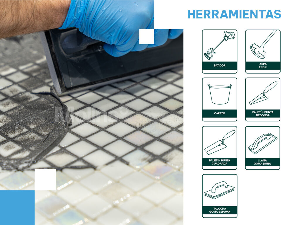 BORADA® EPOLUXE es un producto bicomponente a base de arenas silíceas seleccionadas, aditivos especiales y resinas reactivas, que endurece por reacción química sin perdida de volumen. Utilizable como adhesivo.