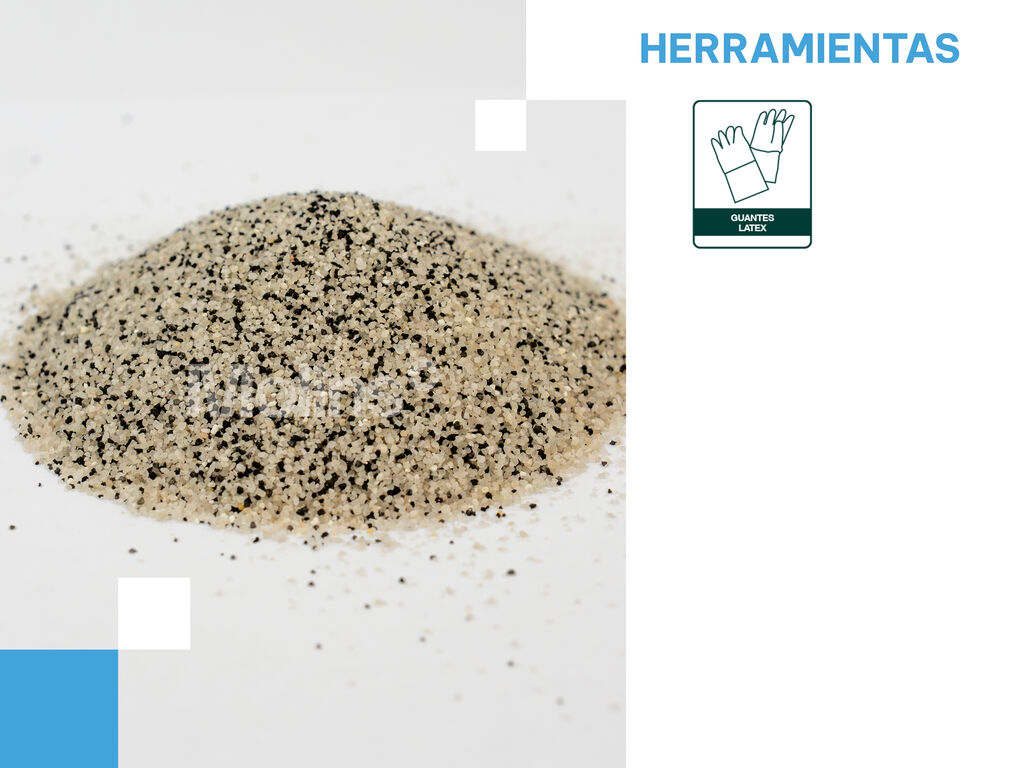 Mezcla de cuarzo natural DORSICOAT PQK 8 y Granucol cond Negro, de granulometría 0,3-0,8 mm.
