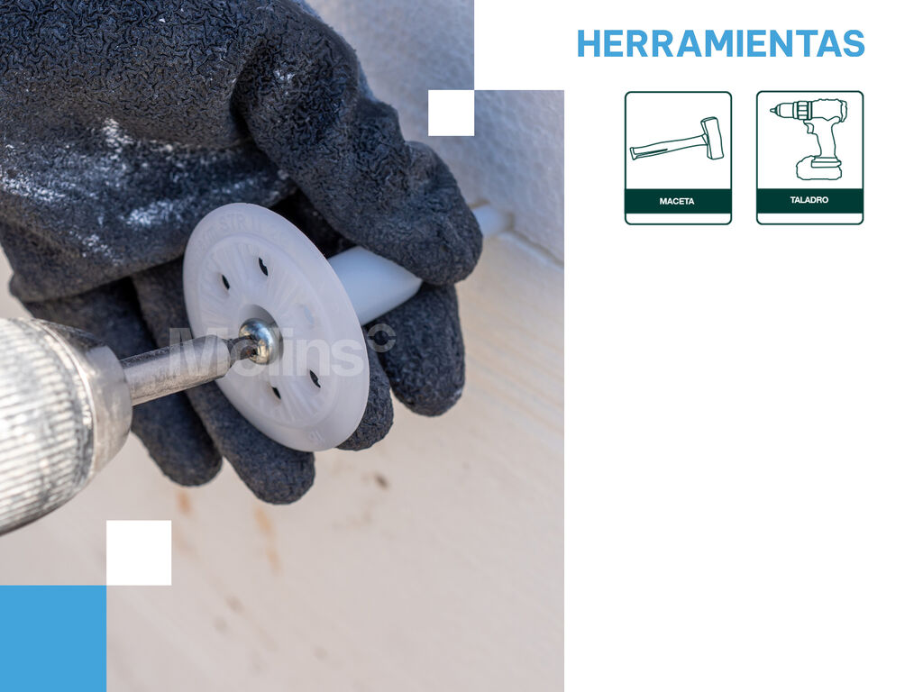 Fixação de qualquer isolamento rígido em material sólido ou oco. |