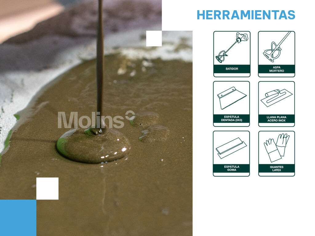 O consumo aproximado é de 2 kg/m2 e mm de espessura. Contudo, o consumo final dependerá, em larga medida, do estado do substrato, da sua porosidade e nivelamento, assim como das condicionantes da obra. |