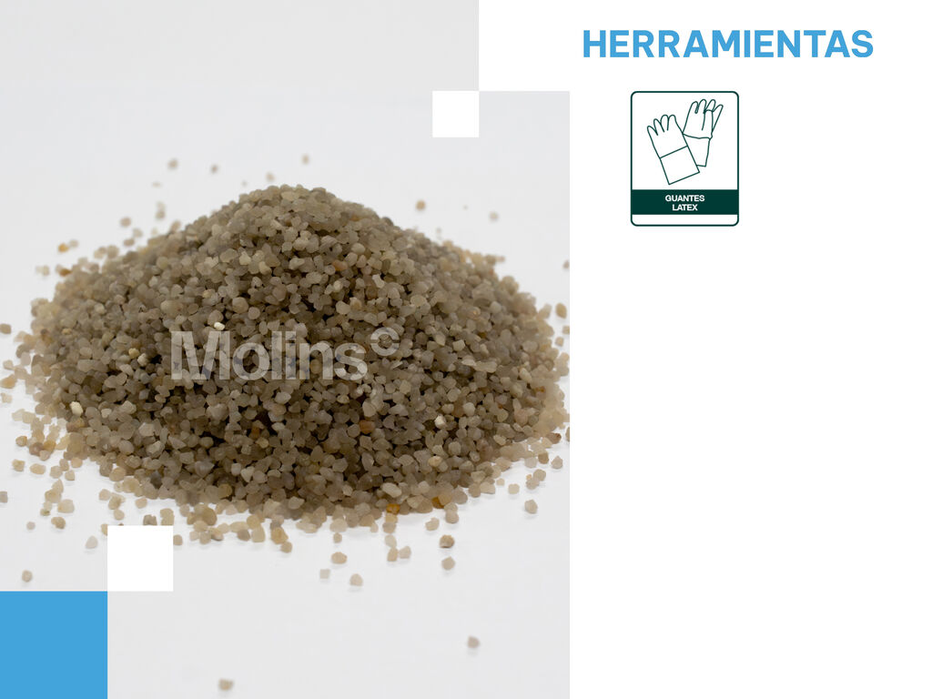 Quartzo natural revestido, com granulometria selecionada, sem pó e compatível com resinas epóxi e poliuretano.