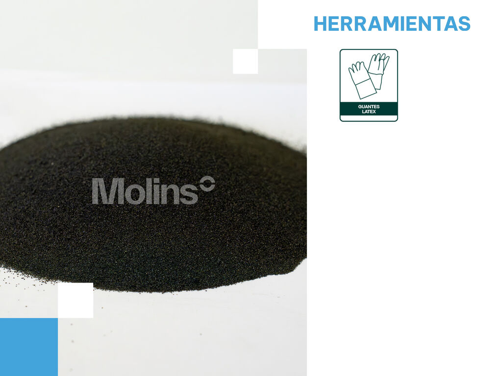 Quartzo revestido com uma película condutora preta, de granulometria selecionada. O quartzo proporciona a resistência mecânica ideal para pavimentos industriais e o seu revestimento condutor dissipa cargas eletrostáticas.