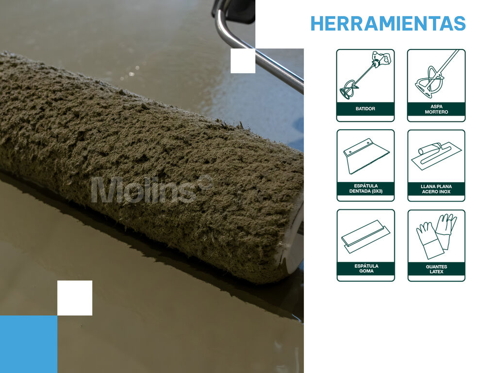 Revestimento epóxi de dois componentes, isento de solventes e acabamento brilhante como revestimento de pavimento de elevado desempenho. Cumpre com os requisitos da norma UNE EN 13813.