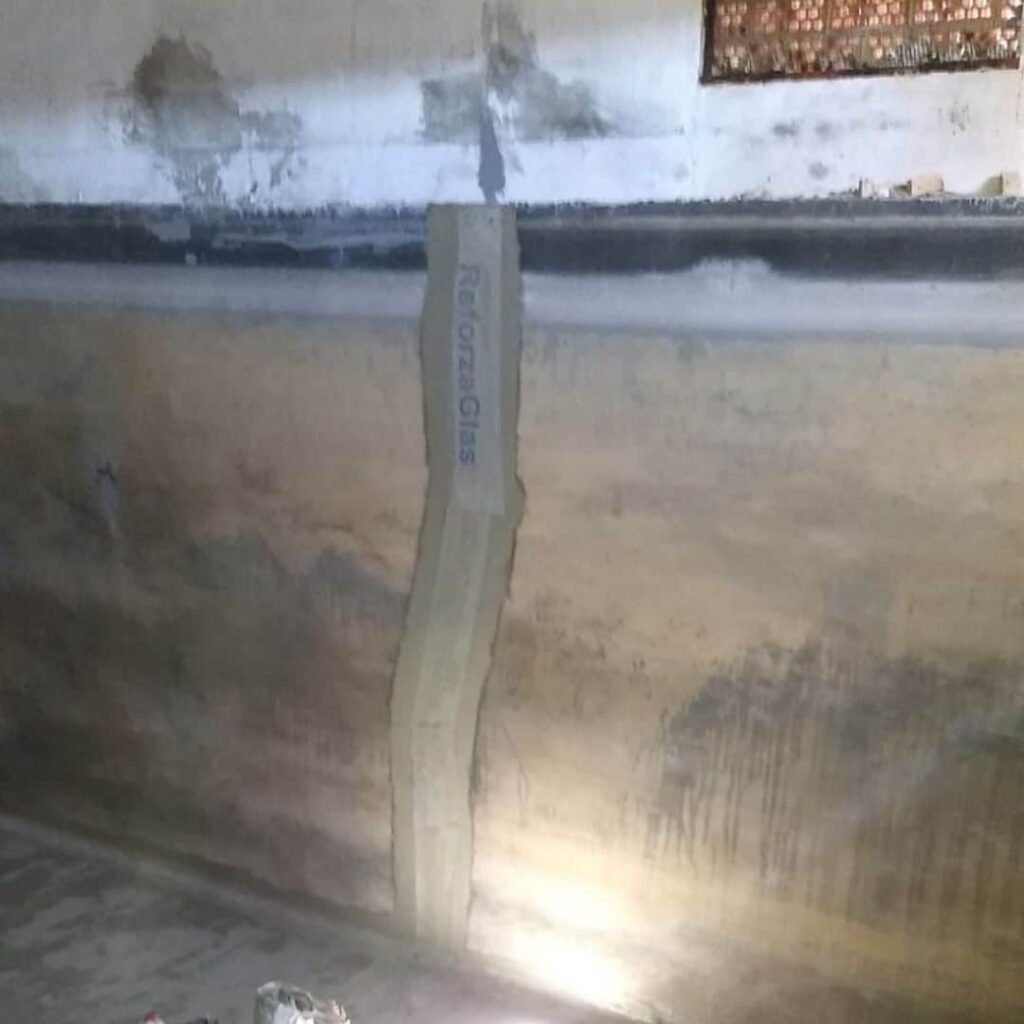 O passo seguinte é reforçar com malha de fibra de vidro de baixa gramagem os pontos singulares que requerem mais atenção e, assim, absorver os movimentos que possam ocorrer. No caso de juntas estruturais ou na necessidade de um reforço de maior desempenho, é necessário um sistema de vedação de juntas elásticas de alto desempenho.