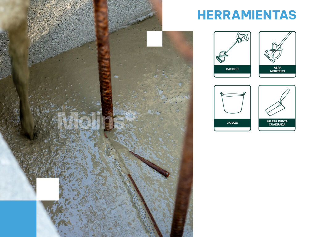 Mortero fluido sulforresistente de alta resistencia, reforzado con fibras, para la reparación estructural del hormigón.